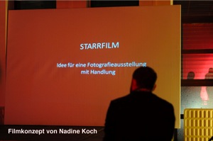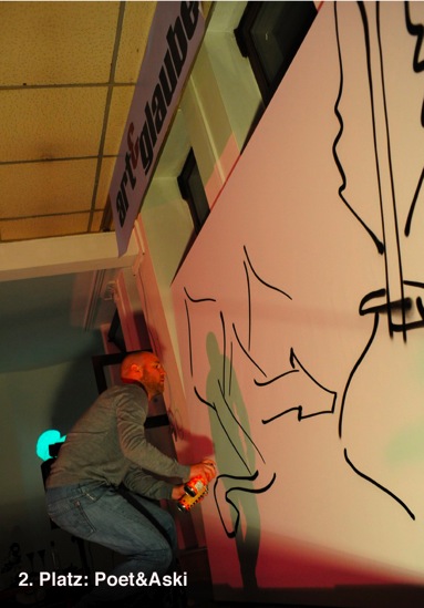 So erntete Emma Grün gleich zum Auftakt reges Publikumsinteresse mit vielen Fragen zum Hintergrund ihrer Konzeptidee und Nadine Koch vermittelte in klarem Vortrag ein schlüssiges Konzept zum Thema "Starrfilm". Das Fluxusprojekt von Ralph Boes zum bedingungslosen Grundeinkommen zeigte, wie breit das Spektrum der Konzeptideen gefächert ist, die auf dieser Plattform präsentiert werden, ebenso wie Poet&Aski, die ihre StreetArt nicht nur auf die Strasse reduzieren und ihren Auftritt zu einer Graffity Performance nutzten.