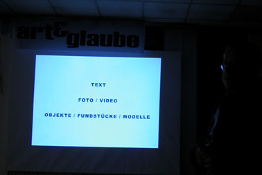 Die bereits bekannten Projekte wurden nochmals vorgestellt und detailliert hinterfragt. Die Vorstellungen zur möglichen Umsetzung der Beiträge wurden erörtert. Nach kurzer Beratung der Jury erhielt Roland Boden den Zuschlag zur Umsetzzung seiner "Dokumentation kontextbezogener Projekte in Text, Foto, Video, Objekten, Fundstücken und Modellen"